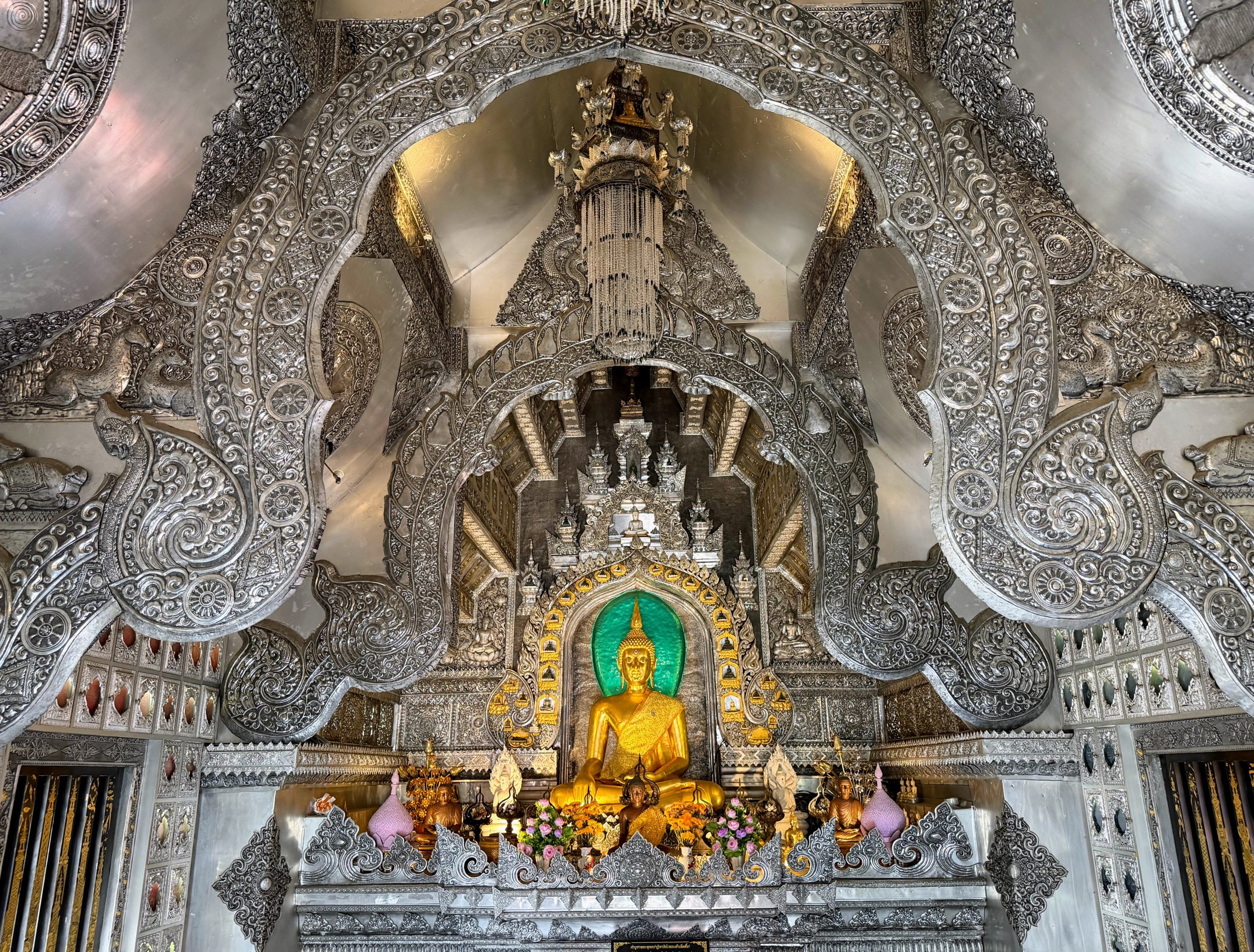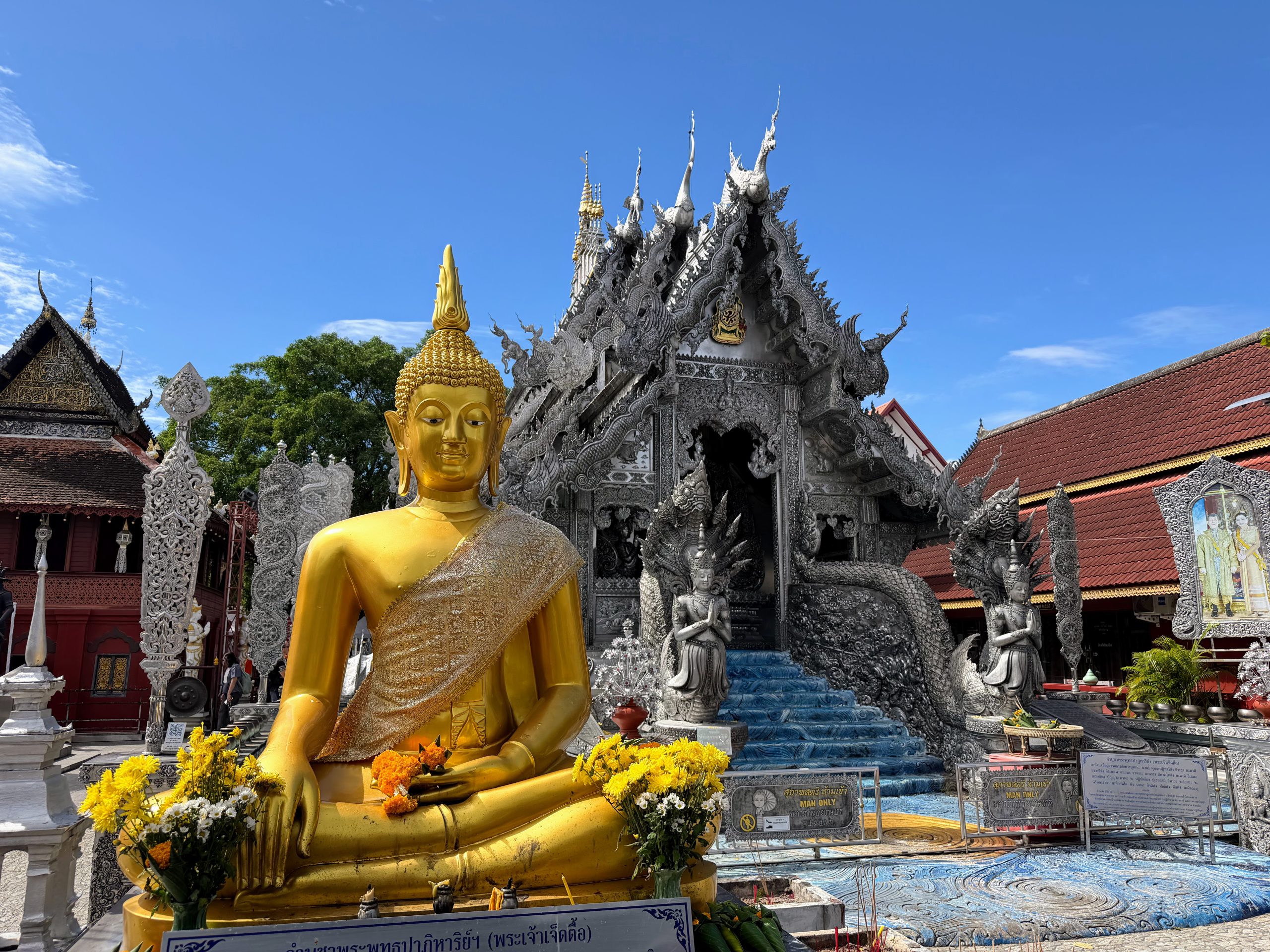 - Wat Sri Suphan (Silver Temple): Situated just outside the Old City, Wat Sri Suphan feels noticeably more modern—so much so that we even spotted a hidden Despicable Me reference worked into the temple walls. Despite its modern touches, it’s still incredibly beautiful and unique. The complex is fairly small, so about 30 minutes is plenty of time to explore. Women are not permitted inside the main temple, which is important to know before visiting.