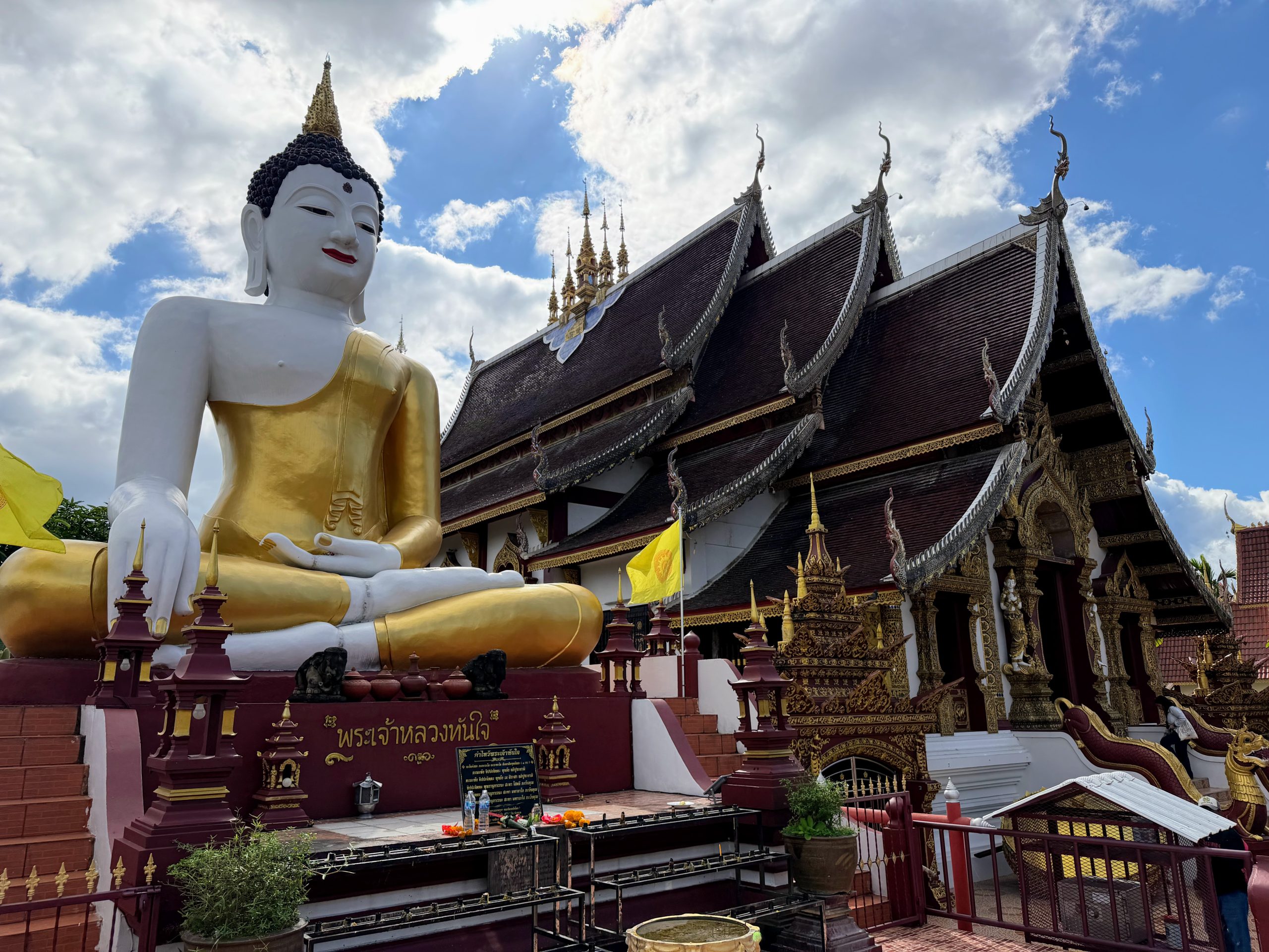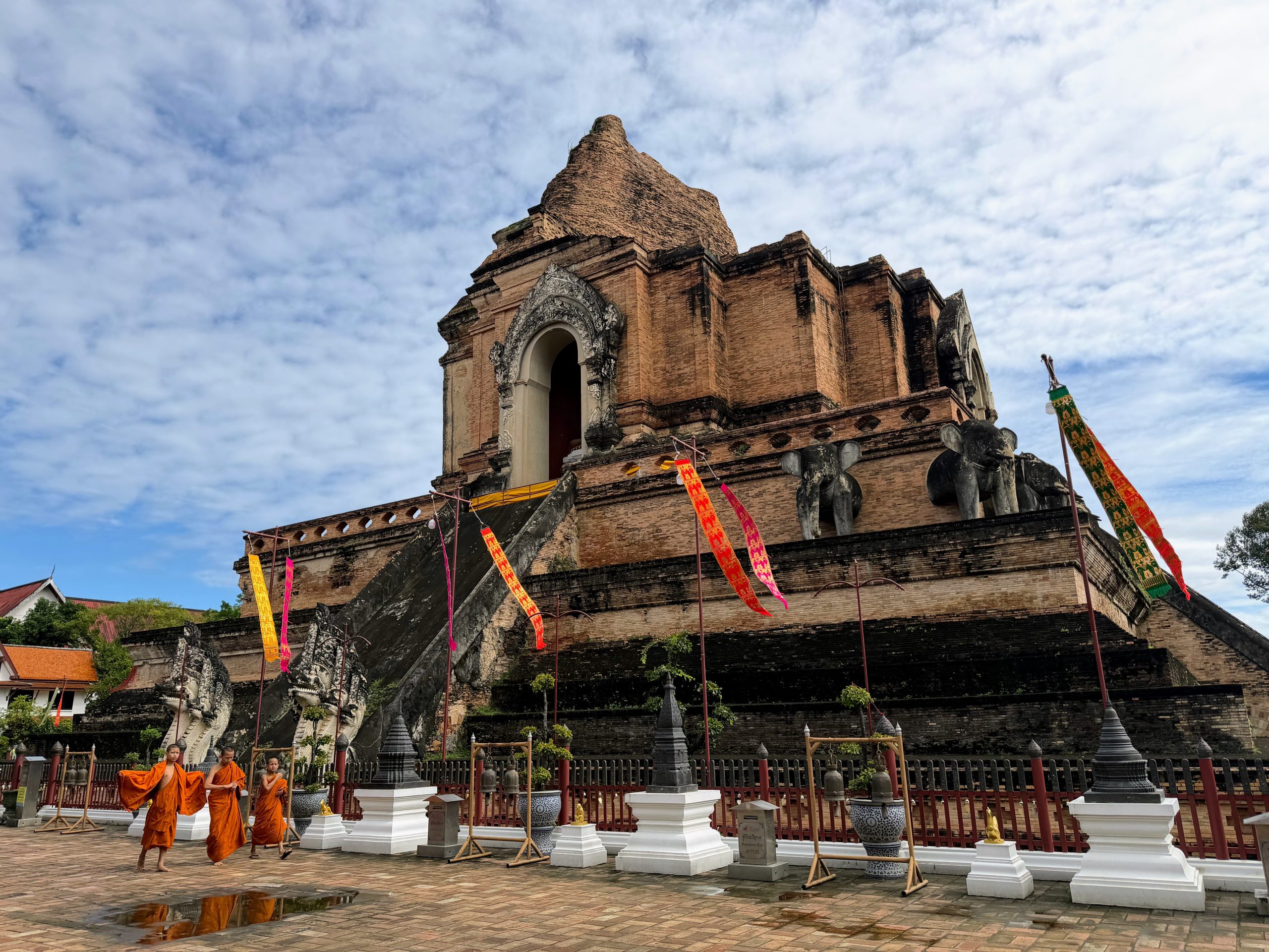 - Wat Chedi Luang: This was our favorite temple in Chiang Mai. The massive, partially ruined chedi feels both historic and incredibly well cared for, striking a rare balance between old and new. There were gongs positioned around the main structure that visitors could strike, which added an unexpectedly atmospheric element to the experience. The combination of scale, history, and energy made this temple especially memorable.