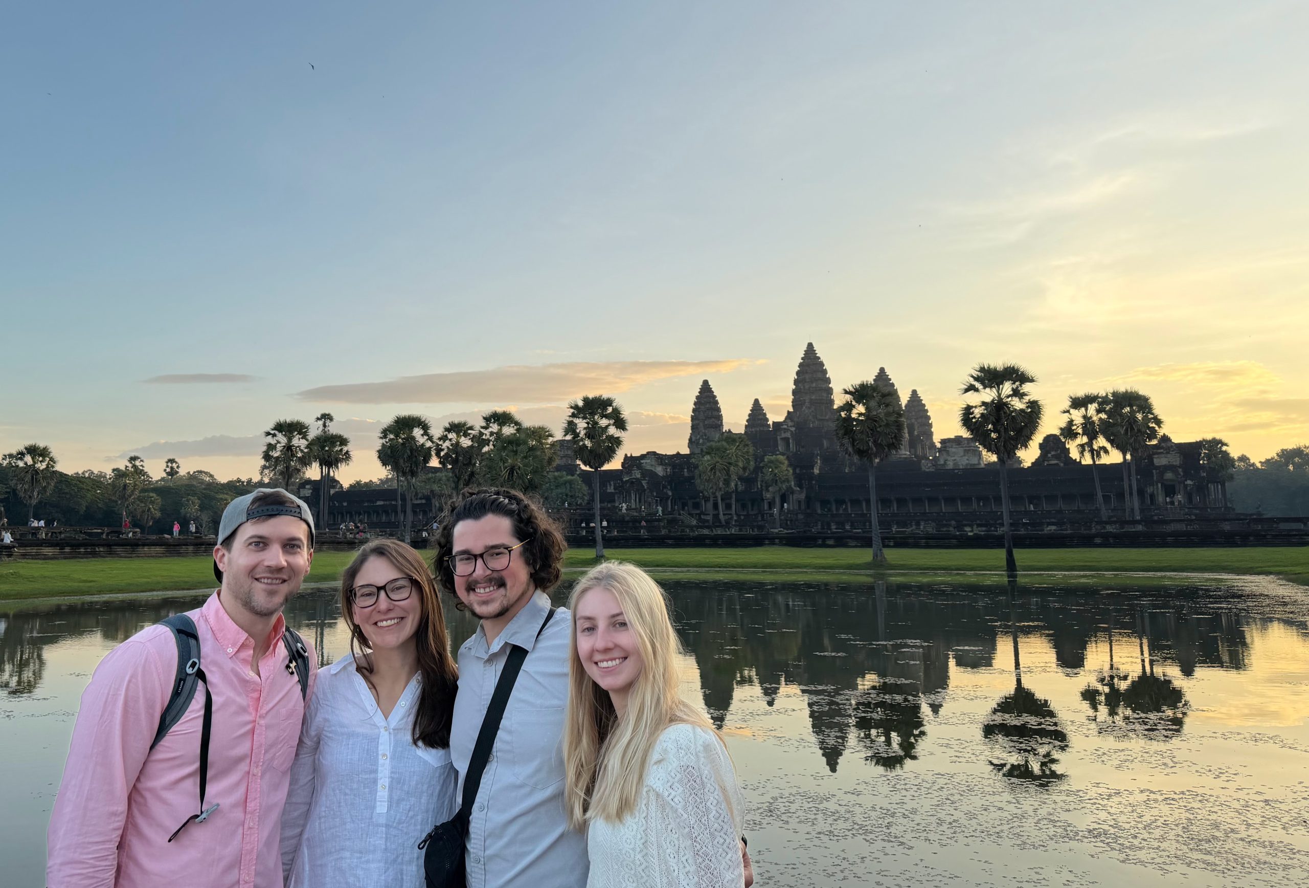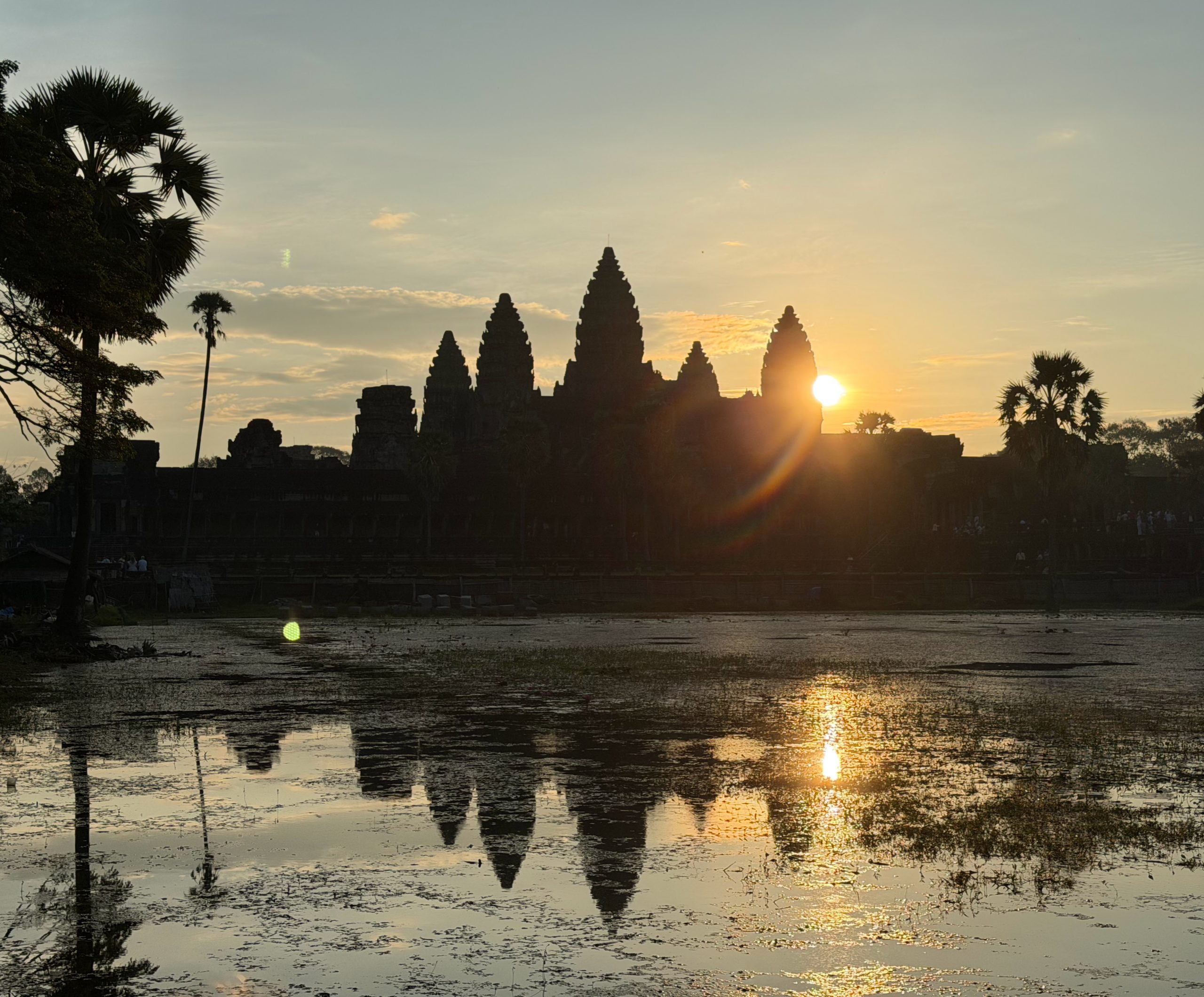 - Angkor Wat: The crown jewel of the complex, Angkor Wat is as iconic as it gets – and also the most crowded, for good reason. The classic experience is arriving before sunrise to watch the sky light up behind the temple, with its reflection shimmering in the ponds out front. It’s beautiful, but also very much a shared experience with thousands of other tourists. Once the sun comes up, you’ll move through the complex with the crowds, learning about its history, admiring the intricate carvings, and taking more photos than you planned. One tip we heard (but didn’t follow) was to catch sunrise here, then immediately leave to visit other temples and return later in the morning once the crowds thin out. In hindsight, that probably would’ve been the move – but it does require some coordination with your guide.
