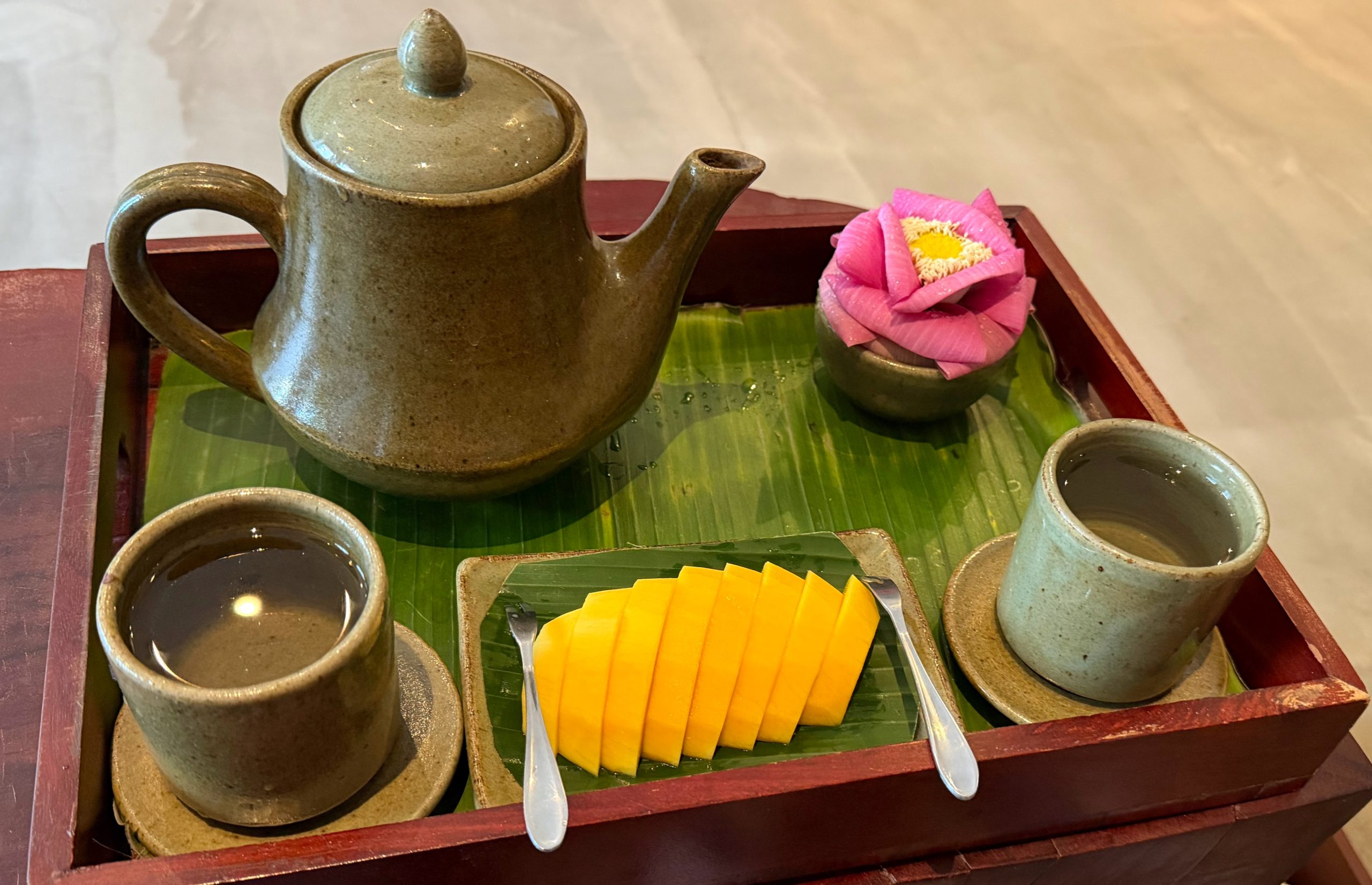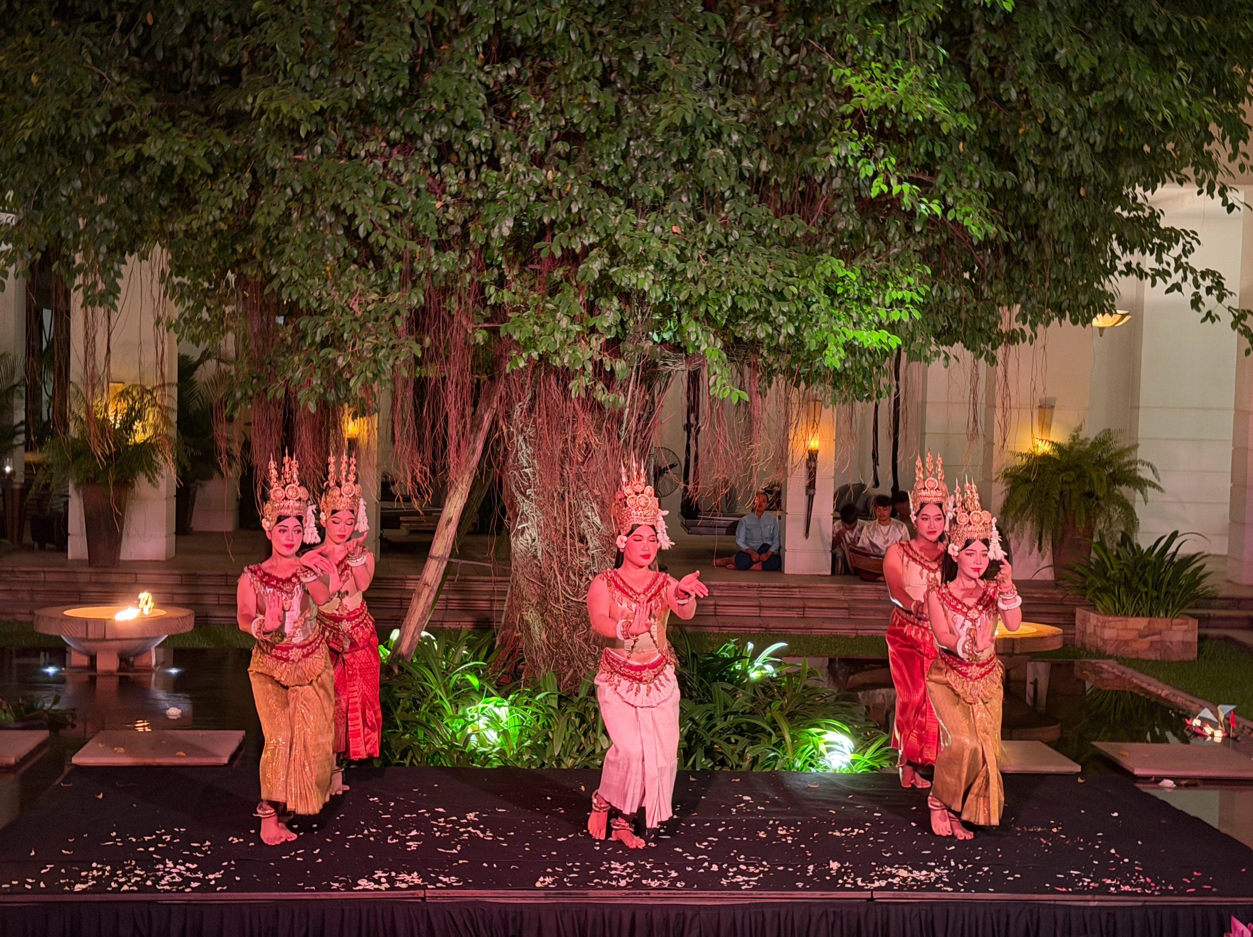 - Where to Stay: We decided to use hotel points and splurge on Park Hyatt Siem Reap, and it was a great call. The property is beautiful, the service was outstanding, and the rooms were incredibly comfortable. They also host cultural performances on-site in the evenings, which pair nicely with the bar’s happy hour, as well as morning flower folding classes. Breakfast was another highlight – definitely worth taking advantage of. The only downside was that the pools weren’t heated, so the water felt a bit too cold to fully enjoy. Even if you stay elsewhere, we’d recommend choosing a hotel in this general area. Being within walking distance of restaurants and having easy access to tuk-tuks makes a big difference in overall convenience.