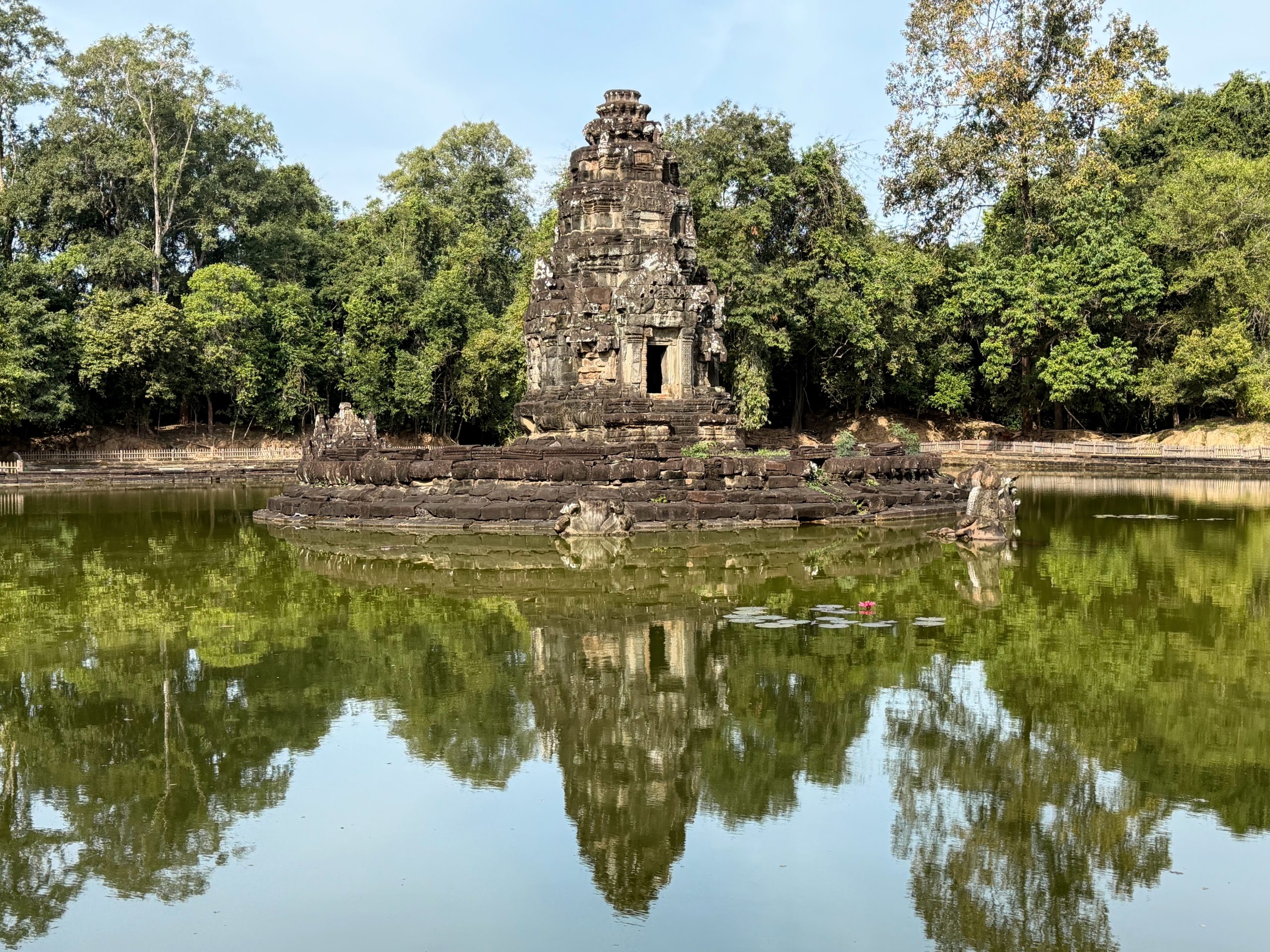 - Neak Poan Temple: Neak Poan was the smallest temple we visited, but one of the most peaceful. Surrounded by water and lily ponds, it feels completely different from the others. There’s a bit of a walk from the parking area, but that’s part of the appeal – the long wooden walkway leading in is incredibly scenic.