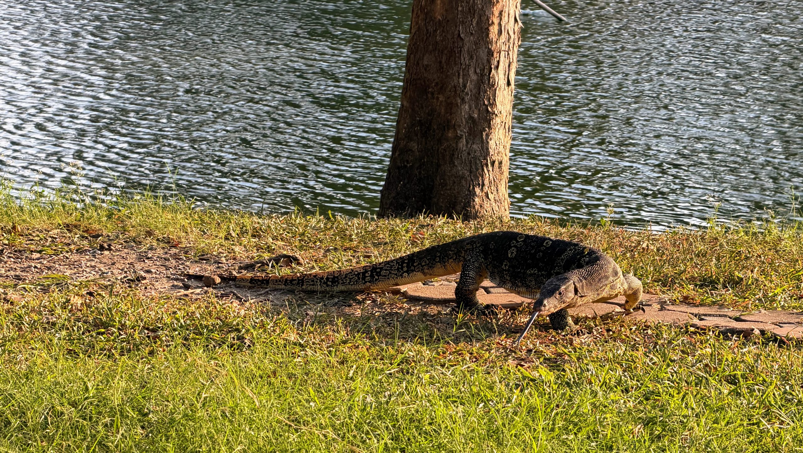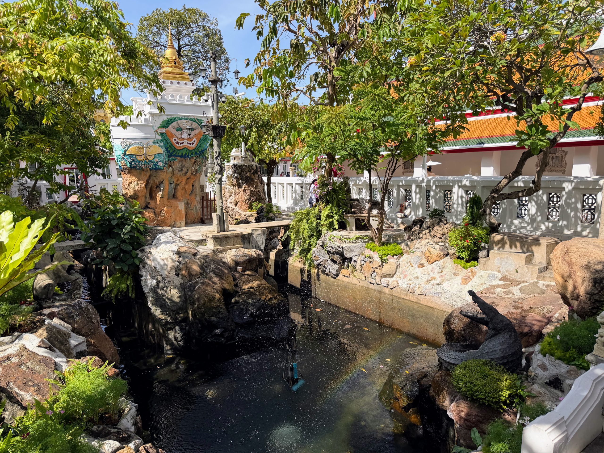 - Lumphini Park: For a break from the city, Lumphini Park is a great escape. It’s a large, green space right in the middle of Bangkok and perfect for a walk. The unexpected highlight? The number of massive Asian water monitor lizards roaming freely around the park, both in the water and along the paths. Not something you see every day – especially if you’re coming from the U.S.